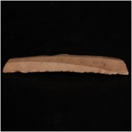 | Description / विवरण | A parallel sided blade made on chert stone, two ridges on dorsal side with flaking marks. Triangular section. |
