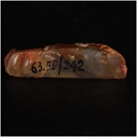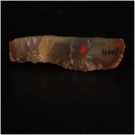 | Description / विवरण | Agate raw material, could have been used for some cutting purpose, convex visible on both ends with flaking signs on the surface. |
