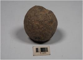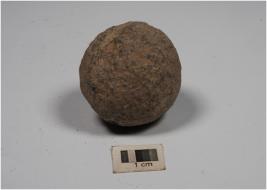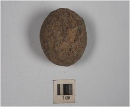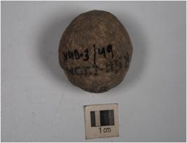 | Description / विवरण | A small stone ball with rough surface and uneven shape. |