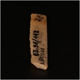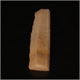 | Description / विवरण | A chert blade with two parallel ridges on the dorsal side. Partly broken at one end, trapezoid section. |