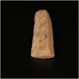 | Description / विवरण | A small blade of chert with two parallel ridge on the dorsal, trapezoid section. |