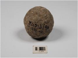 | Description / विवरण | A small ball made of stone with rough surface and circular section. |