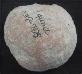 | Description / विवरण | Trench SGL- 2EII, LxB-D XXVI.35 to XXVIII.25 x 0.50 to 4.00 mts - 3.75 to 3.83 mts XXV It is a broken ball of baked clay. It seems to be used while playing different games. Surface of the object is craggy, rough and uneven. Colour of the object is brick brown. |