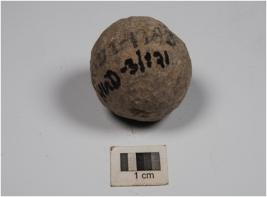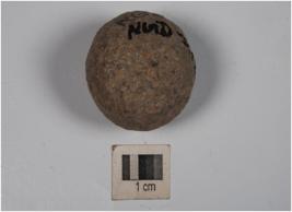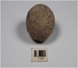 | Description / विवरण | A small stone ball with rough surface and circular section. |