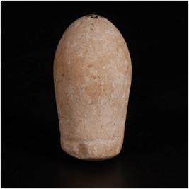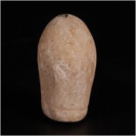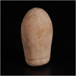 | Description / विवरण | A rubbing stone of limestone, spherical in shape with a polished surface and a flat base, circular line at the base. |