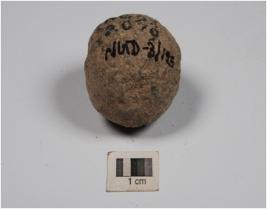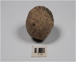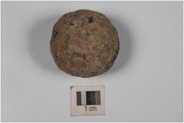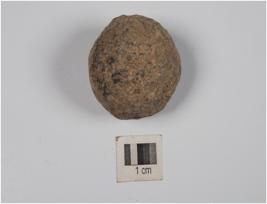 | Description / विवरण | A small stone ball with rough surface and circular section. |