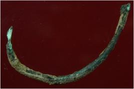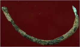 | Description / विवरण | Trench ZA-8, LxB D 5.09 mtrs x 5.85 mtrs 2.93 mtrs at peg ZA8, Stratum Pit 5 sealed by Layer 1 It is a copper rod of green colour of rough surface. It s shape is not very straight. Hard patina is present on it. It was used as a tool. |