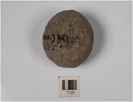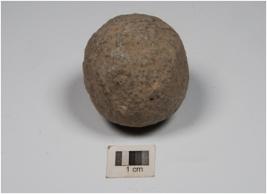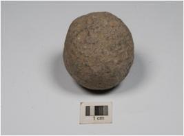 | Description / विवरण | A stone ball with circular section and rough surface. |