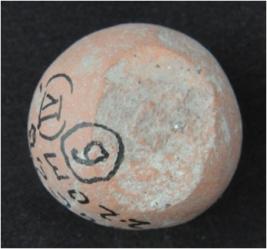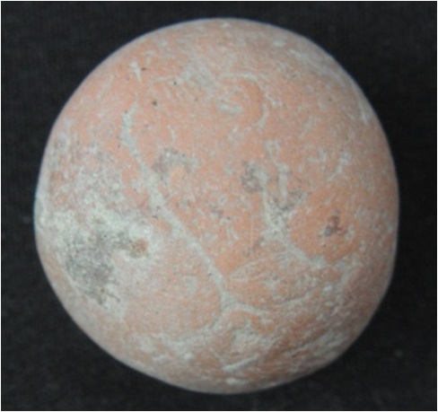 Trench SGL-2B, LxB-D V .60 x 3.20 - 2.20 mbs from IV, Stratum Layer 6 It is a terracotta ball. It seems to be used as playing unit. Surface of object is rough and uneven. Colour of object is brick brown.