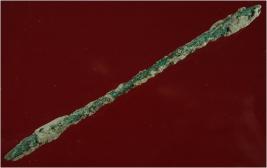 | Description / विवरण | Trench ZA-8, LxB-D 2.60 mtrs x 4.32 mtrs - 5.58 mtrs A peg ZA8, Stratum Layer 19 It s a copper rod of green colour and rough surface and some thickness on its two ends. Hard patina is present on it. It was used as a tool. |
