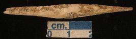 | Description / विवरण | A bone arrowhead, one end is pointed and other is damaged, light yellowish. |