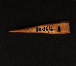 | Description / विवरण | Bone needle with perforation, pointed one side. Polished surface and Rectangular in section. |