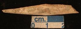 | Description / विवरण | A bone arrowhead, one end is pointed and other is broken, light yellowish. |