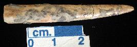 | Description / विवरण | A bone arrow head, off white in colour, pointed top, one end is broken. |
