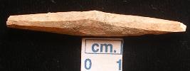 | Description / विवरण | Bone arrow head, pentagonal, off white colour, pointed at both ends but one end is broken. |