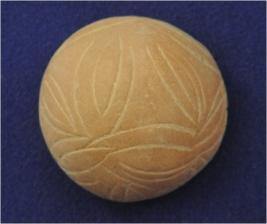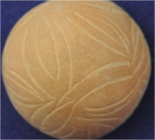 Trench SGL-2 , Length VI1 to IX1, Breadth 2.00 to 3.00 m, Depth 1.55 to 2.10 VI1, Stratum Layer 5 It is a broken ball made of baked clay. It seems that it was in round shape. It has some flower like carving on the surface. Colour is light brown.