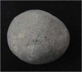 | Description / विवरण | Trench EX 1, Depth 9.40 mbs at peg XXIV, Stratum Layer 42 It is a small ball made of baked clay. The object has muddy colour, rough and uneven surface. It seems to be used as playing unit. |