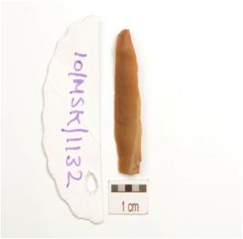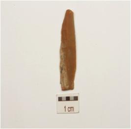 | Description / विवरण | Fragment of parallel sided blade made on chert, ridge on dorsal, bulb on ventral, wear marks along cutting edges and triangular cross section. |