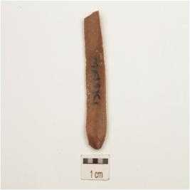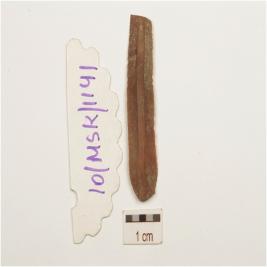 | Description / विवरण | Fragment of parallel sided blade made on chert, two ridges on dorsal, trapezoidal cross section and bulb on ventral. |