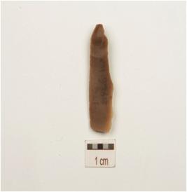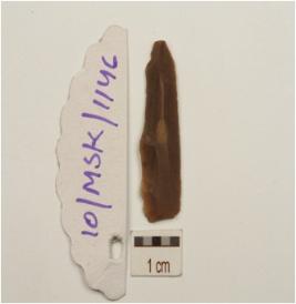 | Description / विवरण | Fragment of parallel sided blade made on chert, ridges on dorsal, bulb on ventral, wear marks along cutting edges. |