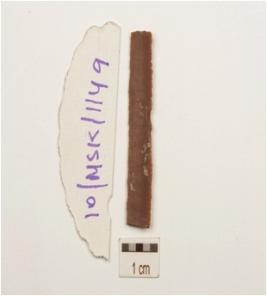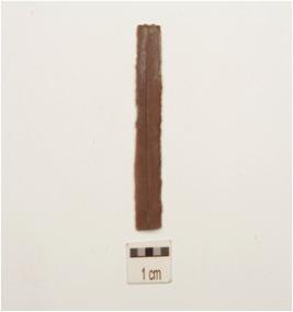 | Description / विवरण | Fragment of parallel sided blade made on chert, wear marks with retouches along cutting ridges, prominent ridge on dorsal, triangular cross section bulb on ventral surface. |