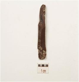 | Description / विवरण | A blade made on chert end struck flake scars on dorsal and bulb of percussion on ventral and sharp cutting edges. |