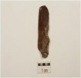 | Description / विवरण | A fragment of struck chert blade, flake scars on dorsal, bulb percussion on ventral, prepared platform on proximal end partly retouch cutting edges. |