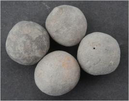 | Description / विवरण | Trench A, Stratum Layer 3 These are four sling objects made of baked clay. They have light brown colour and rough surface. |