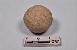 | Description / विवरण | A stone ball with rough surface and circular section. |