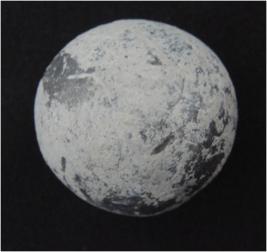 | Description / विवरण | Trench A, Stratum Layer 4 It is a ball made of baked clay. It has black colour, round shape and rough surface. |