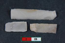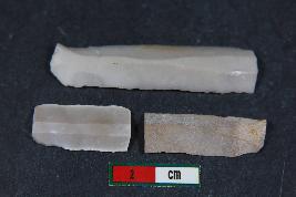 | Description / विवरण | Fragments of blades with one dorsal ridge and smooth surface.One of the fragment has two dorsal ridges.One of the fragment has length 2.8 cm and width 0.9 cm |