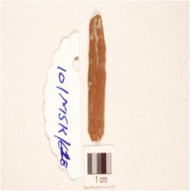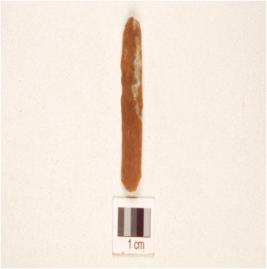 | Description / विवरण | A baked blade made on chert, two ridge on dorsal, bulb on ventral and use marks on along working edge. |