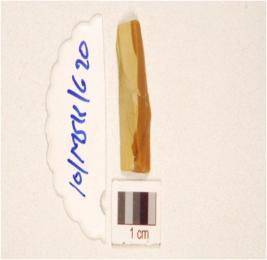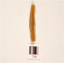 | Description / विवरण | A flake made on chert on ridge on dorsal, working edge and triangular cross-section. |