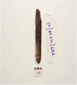 | Description / विवरण | A parallel sided blade with two ridge on dorsal, made on chert, use-wear marks along the working edges and trapezoidal cross section. |