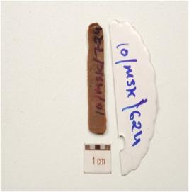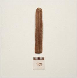 | Description / विवरण | Fragment of a chert blade, with double ridge on dorsal, use-wear marks along the working edges, diffused bulb on ventral and, trapezoidal cross section. |
