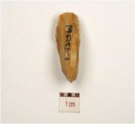 | Description / विवरण | A chert core with prepared platfrom cortex on surface and five blade scars. |