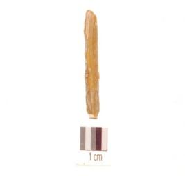 | Description / विवरण | A chert blade with double ridge on dorsal trapezoidal cross-section and red use wear marks on cutting edge. |