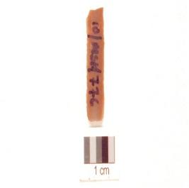 | Description / विवरण | A chert blade with prominent mid-ridge on dorsal, triangular cross-section and use-wear marks on cutting edge. |