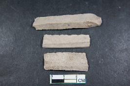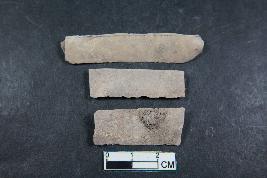 | Description / विवरण | Fragments of blades with one dorsal ridge in one of them and two dorsal ridges in two of them. One of them have bulb of percussion. One of them is 3.9cm in length and 1.2cm in breadth. They have smooth surface. |