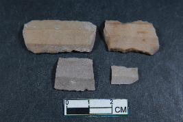 | Description / विवरण | Fragments of blades with one dorsal ridge in one of them and two dorsal ridges in three of them. They have smooth surface. |