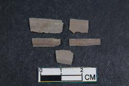 | Description / विवरण | Fragments of blades with two dorsal ridges in four of them and one dorsal ridge in one of them. One of them has bulb of percussion. They have smooth surface. |