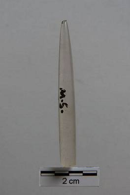 | Description / विवरण | Conical shaped object with flat round end. Tip of the object is broken. Highly polished surface. |