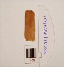 | Description / विवरण | A flake made on chert with two ridge on dorsal. |