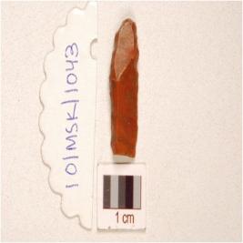 | Description / विवरण | A flake made on chert with on ridge on dorsal. |