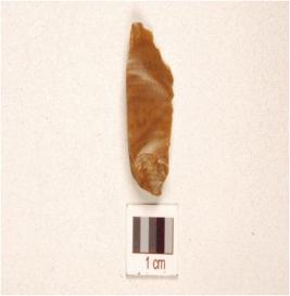 | Description / विवरण | A flak made on chert with one ridge on dorsal. |