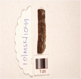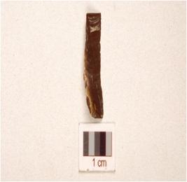 | Description / विवरण | A fragment of a blade made on chert and one ridge on dorsal. |