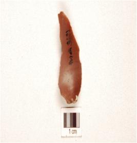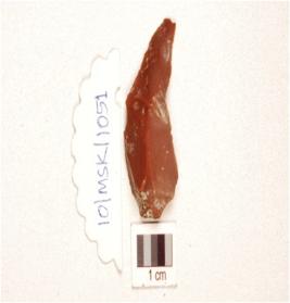 | Description / विवरण | A flake made on chert with on ridge on dorsal. |