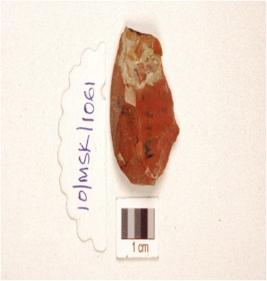 | Description / विवरण | A broad flake made on chert with ridge on dorsal. |