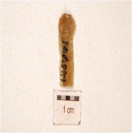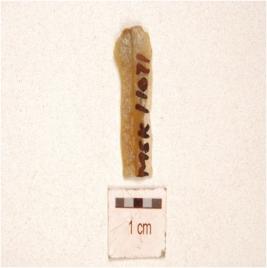 | Description / विवरण | A chert blade prominent bulb on the ventral, flake scars on the dorsal, partly retouching on the cutting edges. |