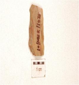 | Description / विवरण | A chert blade flake scars on the surface, prepared platfrom on the proximal and partly retouching on the cutting edges. |